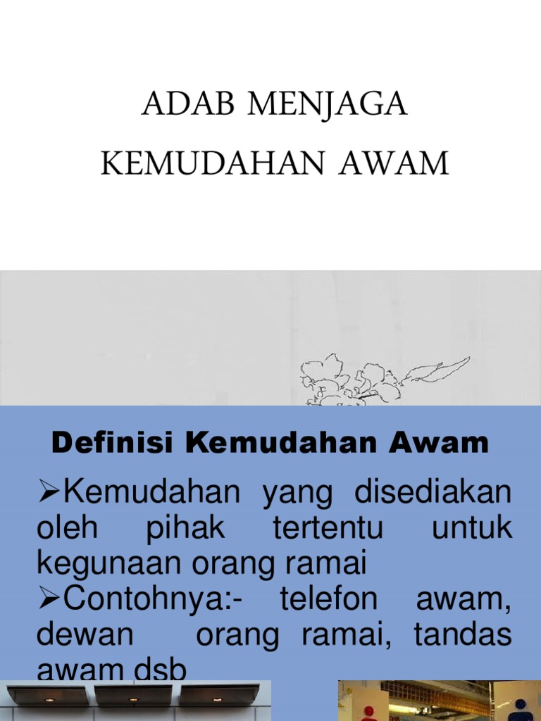 Adabmenjagakemudahanawam •kemudahan yang disediakan oleh pihak tertentu untuk kegunaan orang ramai •contoh : · gunakan mengikut keperluan tanpa pembaziran. Download dan streaming adab menjaga kemudahan awam full album terlengkap. Contoh kemudahan awam ialah tandas awam, stesen bas, stesen komuter dan lapangan terbang. Aaliyah nat ( starliyahfilm )assistant director :