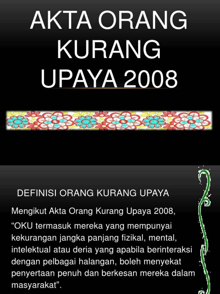 Related : Akta Orang Kurang Upaya 2008 : Perkembangan hak orang kurang upaya di malaysia..